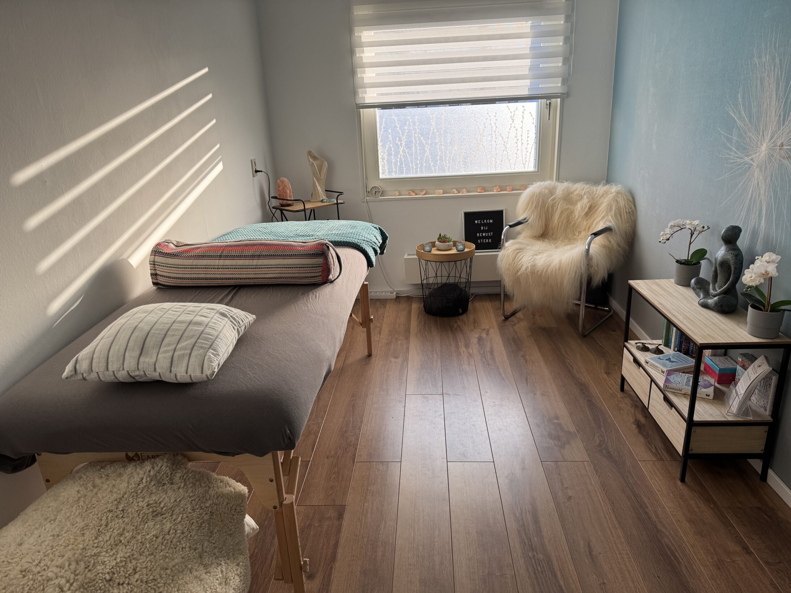 Tijdens een bars sessie lig je met kleding aan op een massagetafel, naar wens met een warme deken over je heen.